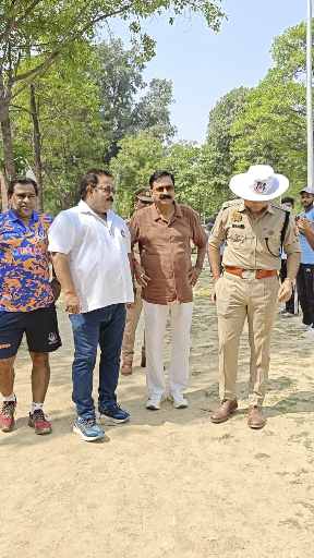 श्रृंखला के दूसरे दिन आज गाजीपुर जनपद के वरिष्ठ पुलिस अधीक्षक डॉ. इरज राजा का मैदान पर उतर प्रदेश क्रिकेट एसोसिएशन के सिलेक्शन कमेटी के चेयरमैन व वरिष्ठ चयनकर्ता कमलकांत कन्नौजिया ने बुके देकर तथा बी.सी.सी.आई के वरिष्ठ व अनुभवी स्कोरर अनिरुद्ध प्रताप सिंह ने यू.पी.सी.ए. कैप पहनाकर स्वागत व अभिनन्दन किया | उसके बाद पुलिस अधीक्षक ने बीसीसीआई अंपायर अनुराग राठौर एवं यू.पी.सी.ए. अंपायर सतीश पाण्डेय से परिचय लेने के बाद सभी खिलाडियों का परिचय प्राप्त किया | इस दौरान उन्होंने हर्ष व्यक्त करते हुए कहा कि उनके इस ग्राउंड पर यू.पी.सी.ए. का ट्रायल मैच होना गौरव का विषय है | उन्होंने कहा कि यू.पी.सी.ए. के किसी भी आयोजन के लिए उनका यह मैदान हमेशा उपलब्ध रहेगा तथा उनके तरफ से सभी प्रकार का सहयोग प्रदान किया जायेगा | उन्होंने खिलाडियों को सम्बोधित करते हुए कहा कि क्रिकेट को खेल भावना के तहत खेला जाना चाहिए |